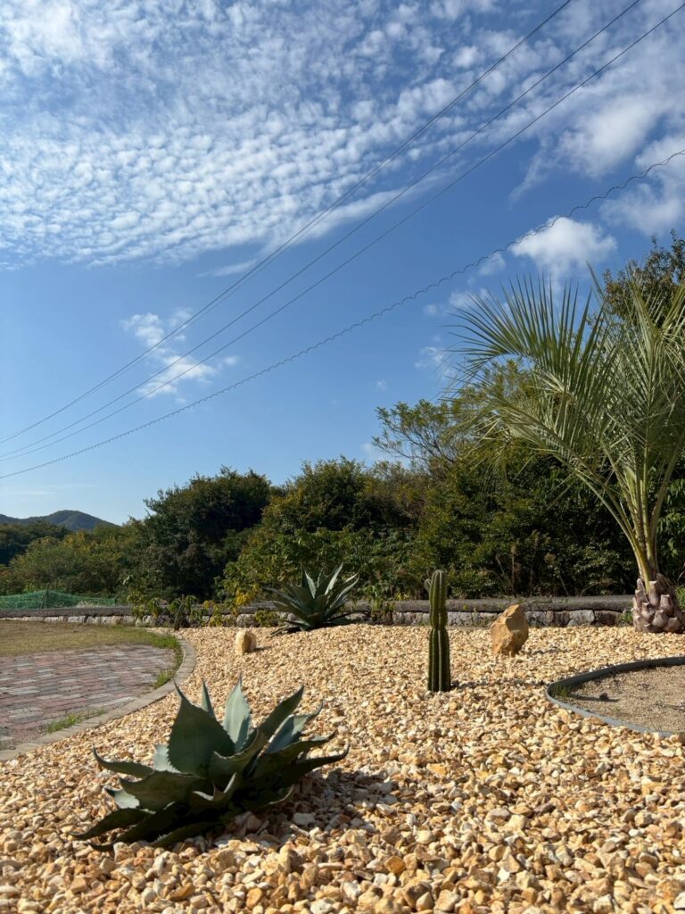コテージ近くのこだわりを詰めたドライガーデン。